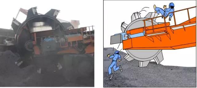 3月9日上午,斗轮机检修完毕,检修人员未按规定押回工作票,只是和运行人员口头联系,试运斗轮机。试运中,检修人员发现斗轮机仍有缺陷,未按规定重新履行工作票手续,只是给司机打手势要求停止斗轮机运行。斗轮机停运后,二名检修人员进入斗轮机的轮斗内处理缺陷。 司机突然想起斗轮机需连续试运,没有到就地检查斗轮机是否具备启动条件,只是在司机室瞭望,便启动斗轮机。导致一名人员被旋转的斗轮带起甩到倒流板的篦子上死亡,另一名人员从斗轮上跳下来,捡了一条命。