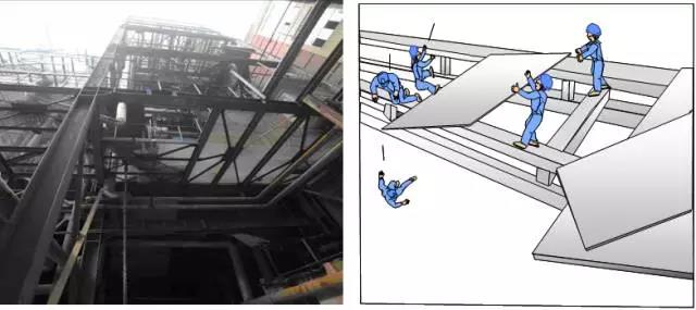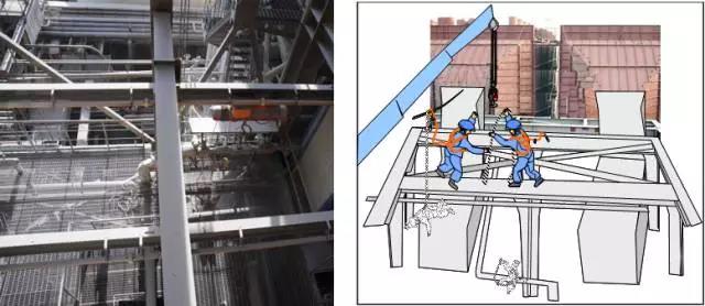 某厂2名作业人员站在空气预热器上部钢结构上,在进行起重挂钩作业时,失去平衡同时跌落,1人死亡。